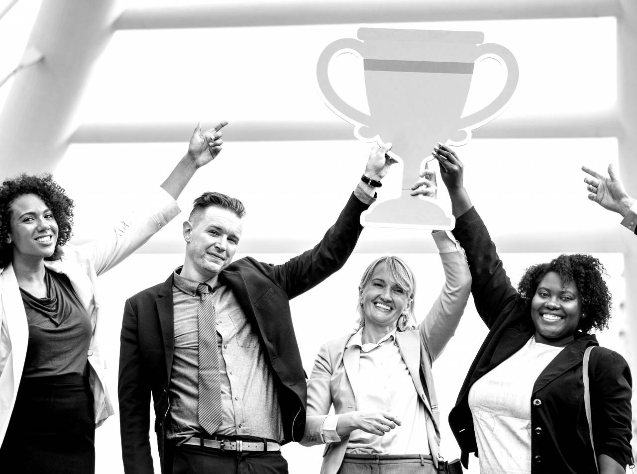 celebrating celebration winning achievement teamwork together accomplishment opportunity trophy victory award multicultural professional diversity holding goal success leadership corporate adultsYou may use the photos for editorial, personal and commercial works. Includes Part of Website or Mobile App, Templates, Articles or Websites